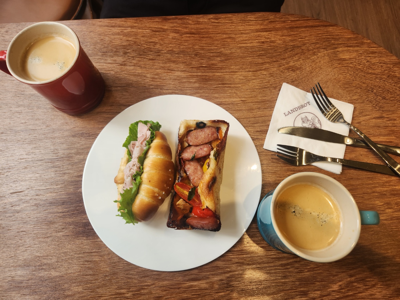 역시 믿고 먹는 란트브로트 빵이었어요. 소금빵에 잠봉베르햄이 이렇게 잘 어울릴 줄이야.