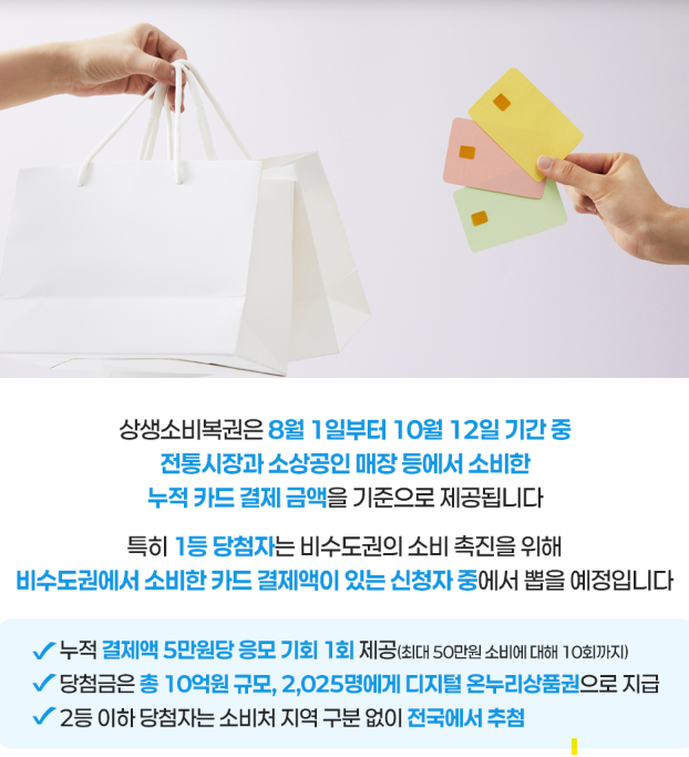 - 지역 소비 활성화 연계: 비수도권 소비자의 당첨 기회 특별히 꾸며져 있는 경우도 있어요.